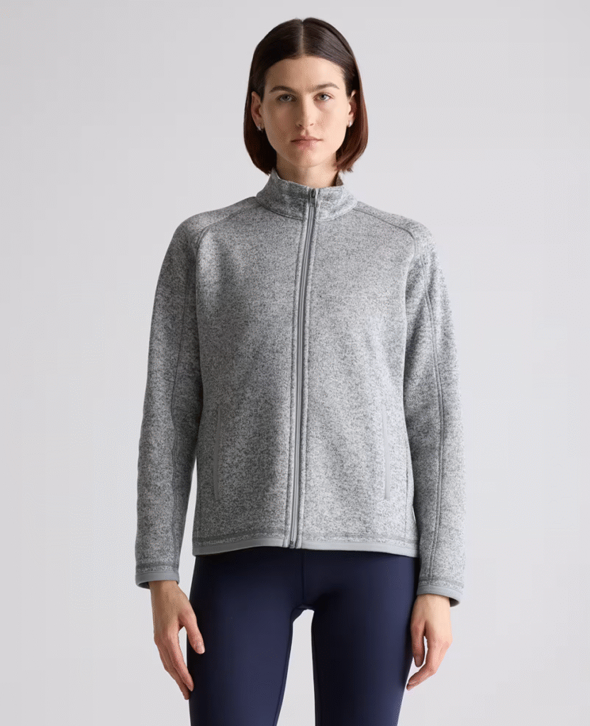 The Quince Sweater-Knit Fleece Full-Zip Jacket is a cozy, lightweight layer that works well over scrubs. Its soft fleece interior keeps you warm in cooler exam rooms, while the smooth exterior gives a polished look without adding bulk. The full-zip design makes it easy to adjust your comfort level throughout a shift, and the pockets provide convenient storage for small essentials. Right now, it’s on sale for $50, making it an affordable, practical option for long clinic days.